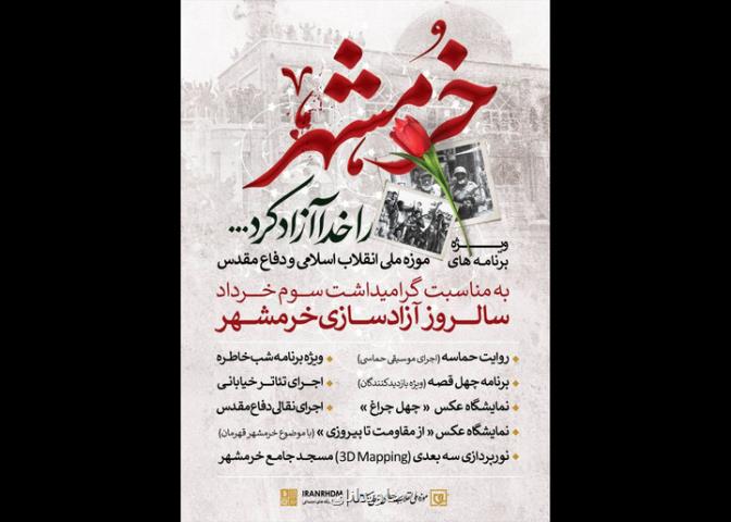 همزمان با فرارسیدن سوم خرداد، سالروز آزادسازی خرمشهر و چهارم خرداد، روز مقاومت مردم دزفول، موزه ملی انقلاب اسلامی و دفاع مقدس میزبان مجموعه ای از برنامه های فرهنگی، هنری و آیینی خواهد بود.
